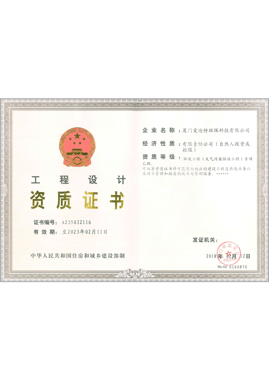 環(huán)境工程(大氣污染防治工程)專項乙級資質(zhì)