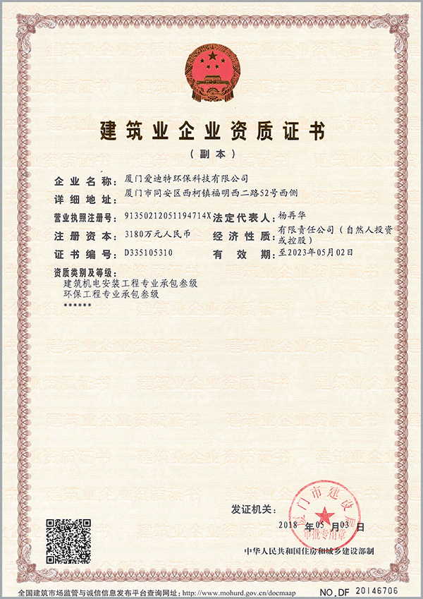 建筑機電安裝工程專業(yè)承包叁級,環(huán)保工程專業(yè)承包叁級